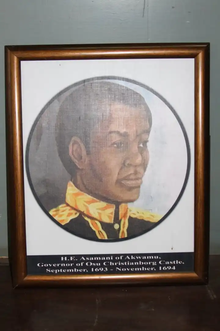 The keys to Christiansborg Castle remain at Bogyawe Palace, considered state keys and part of Akwamu royal regalia. The event is commemorated in song (Ɛdɔm nsafoa) and a bronze statue of Asameni, which depicts him in warrior attire, holding a Danish flintlock gun in one hand and the castle keys in the other, with his left foot resting on a cannon a lasting symbol of Akwamu courage, strategy, and influence over the coastal trade networks.